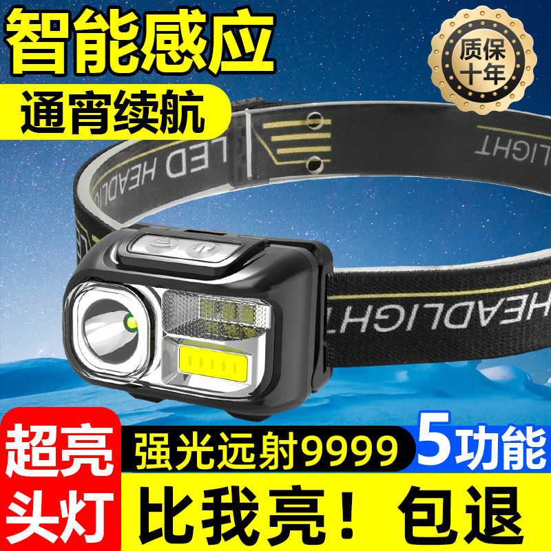 新型クロスボーダー二重光USB強力ライトType-c充電COBセンサー1200バッテリーLED屋外家庭用ヘッドライト