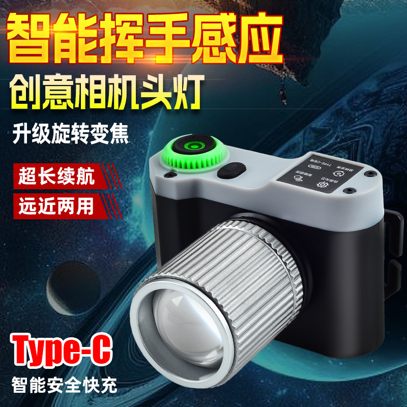 国境を越えた新型擬似カメラランプType-c充屋外手を振って強い光を感知した頭に灯釣り灯をつけた