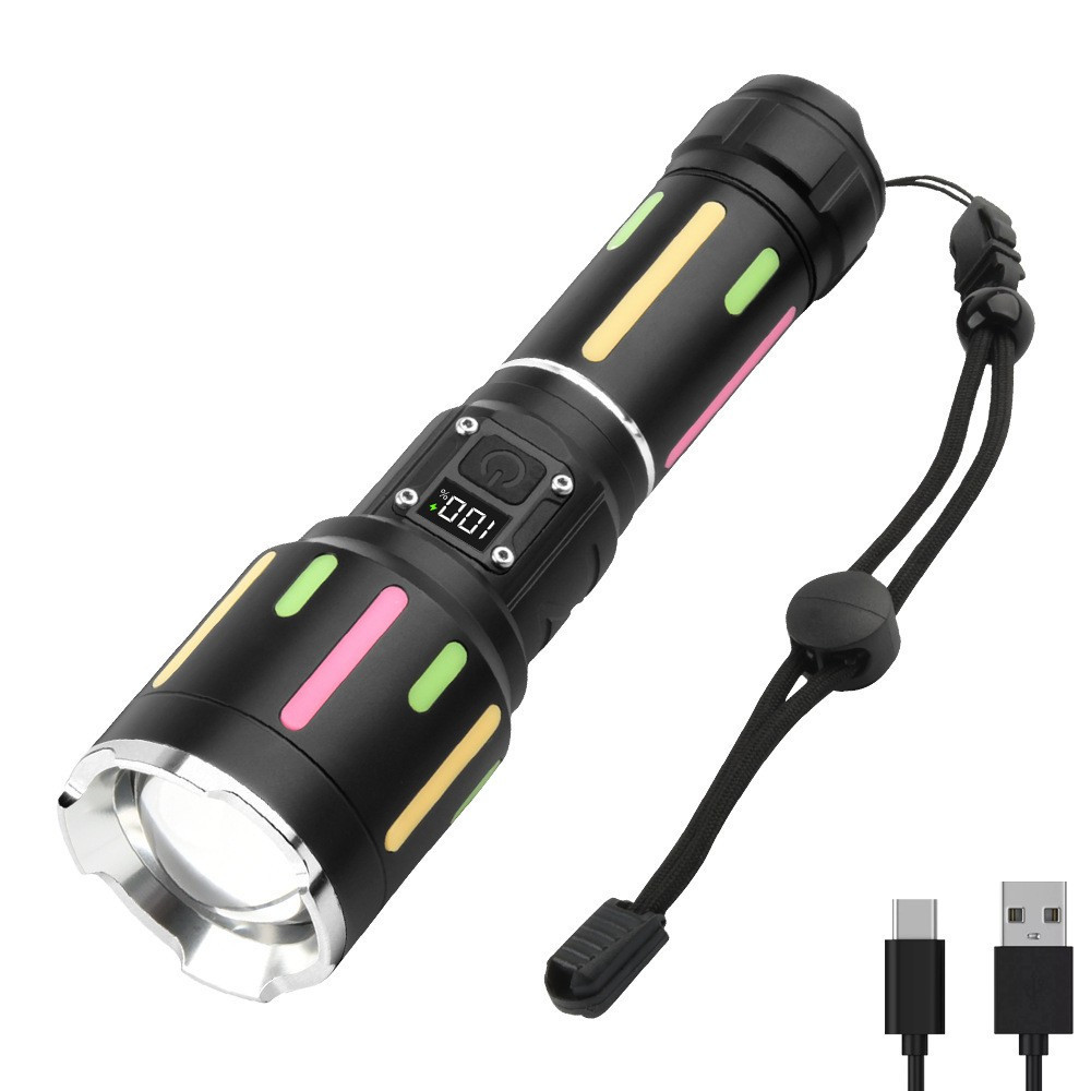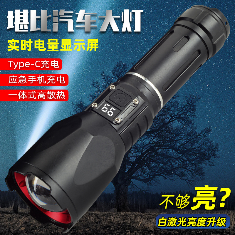 クロスボーダー新型ロング航続懐中電灯アウトドア超亮遠射伸縮携帯白レーザーデジタル表示充電懐中電灯