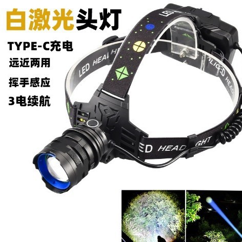 国境を越えた新型白レーザー強光LEDヘッドライト屋外照明大汎光Type-C充電ズームヘッドライト