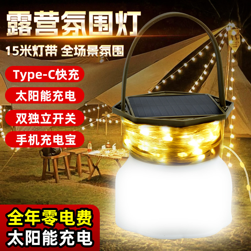 クロスボーダー新型ソーラー屋外照明キャンプライト巻き尺収納LEDキャンプライトストリングテント応急雰囲気