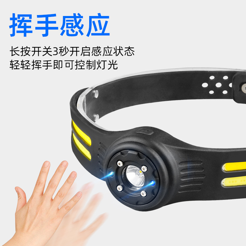 国境を越えたヘッドセットLED COBシリコンゴム強光ヘッドライト屋外多機能携帯緊急充電センサーライト