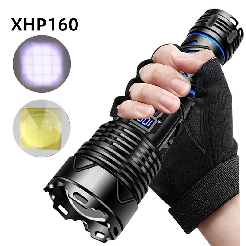 国境を越えたアマゾンの新型P160強光懐中電灯屋外遠射ズーム多機能表示充電懐中電灯
