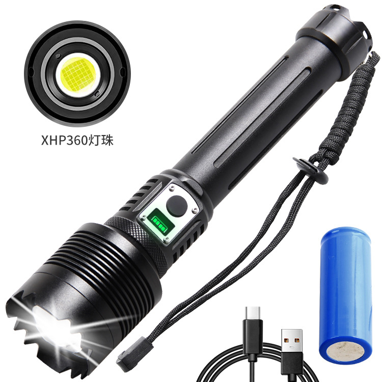 国境を越えた新型hxp 360強光ズーム電力量表示Type-c充電出力遠射多機能LED懐中電灯