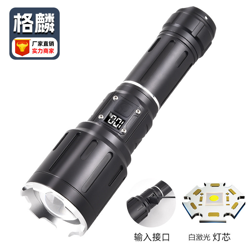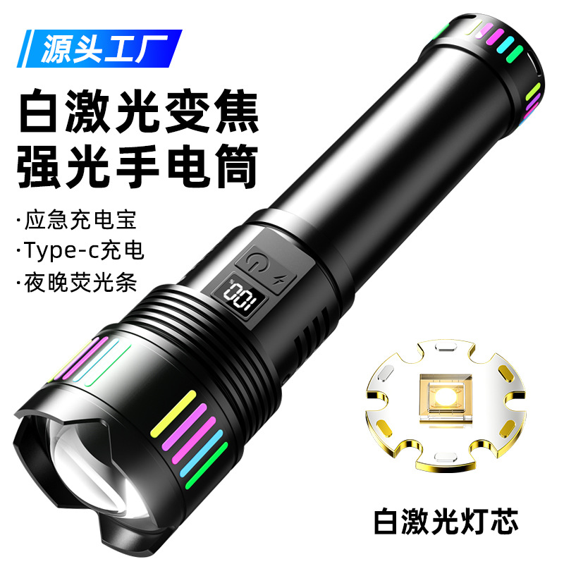 クロスボーダー新型白レーザー強光ハイパワーType-C充電屋外ズーム遠射スクリーンLED懐中電灯