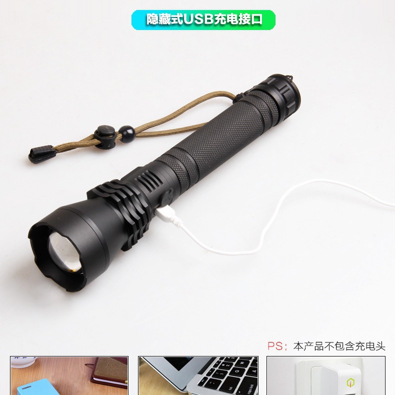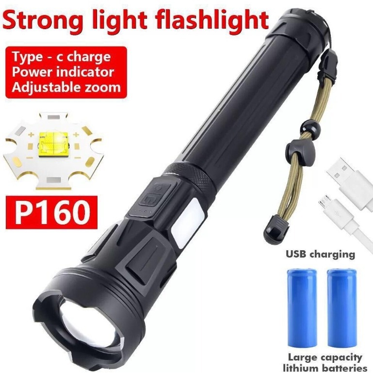 クロスボーダー新アルミ合金p160ハイパワーズームusb充電帯電力量表示屋外赤白色懐中電灯