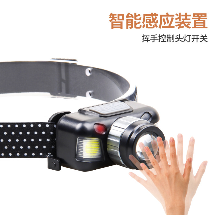国境を越えた新型手を振ってusb充電強光回転ズーム屋外釣り家庭用ledランプcobヘッドライト