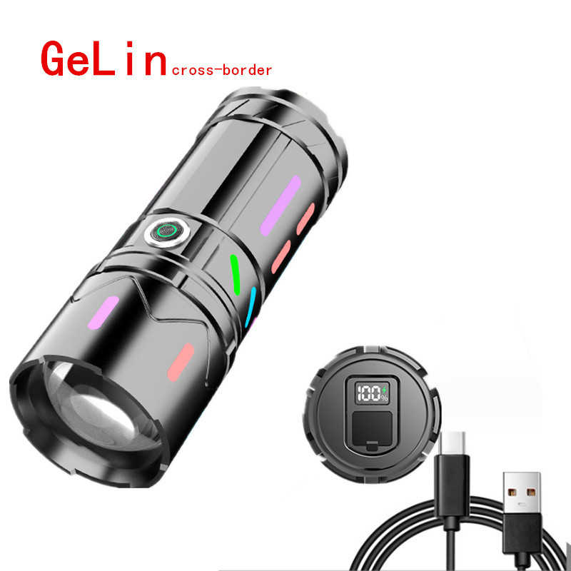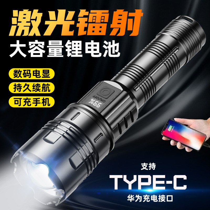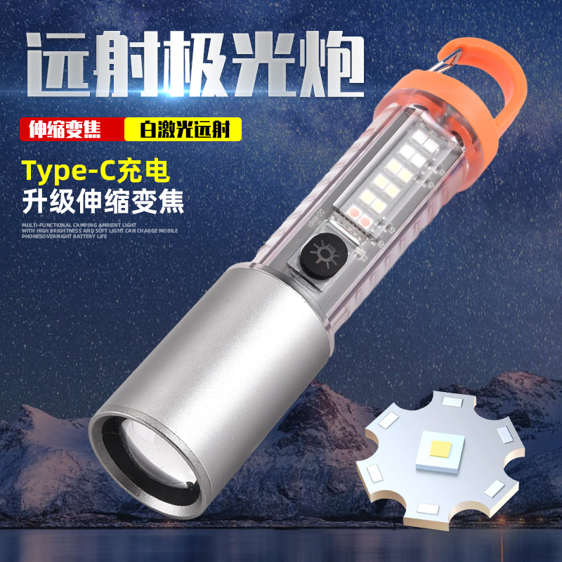 クロスボーダー新型白レーザー懐中電灯伸縮ズームType-c充電大電力表示デジタルスクリーン屋外
