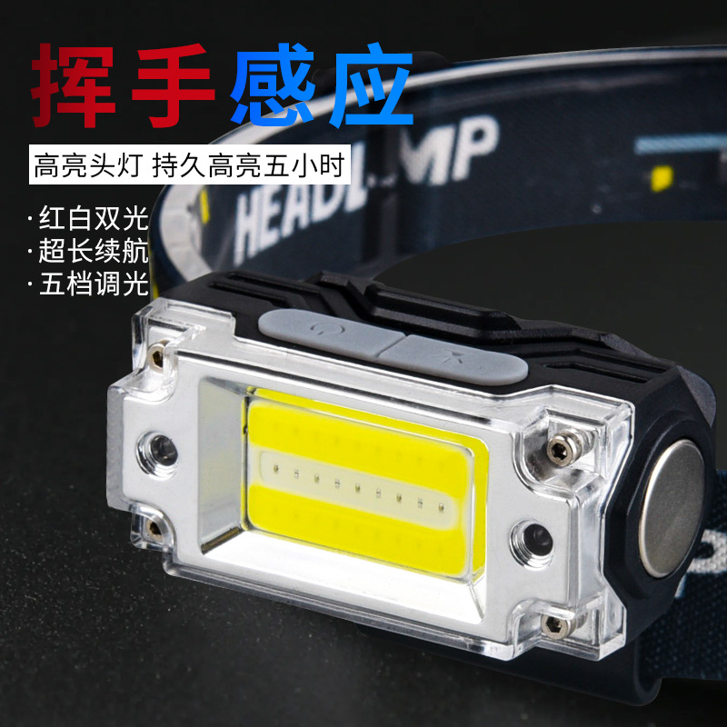 クロスボーダー新型多機能type手を振って強い光を感知します。led充電赤と白の緑の光の磁気は帽子のヘッドライトを吸い込みます。