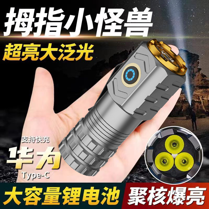 新型ミニ三眼怪獣強光懐中電灯超遠射黒科技小鋼砲三眼小怪獣磁気吸灯