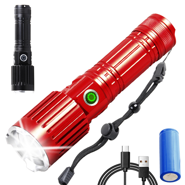 クロスボーダー新型xhp50強光usb充電伸縮ズーム遠射led屋外キャンプ照明懐中電灯