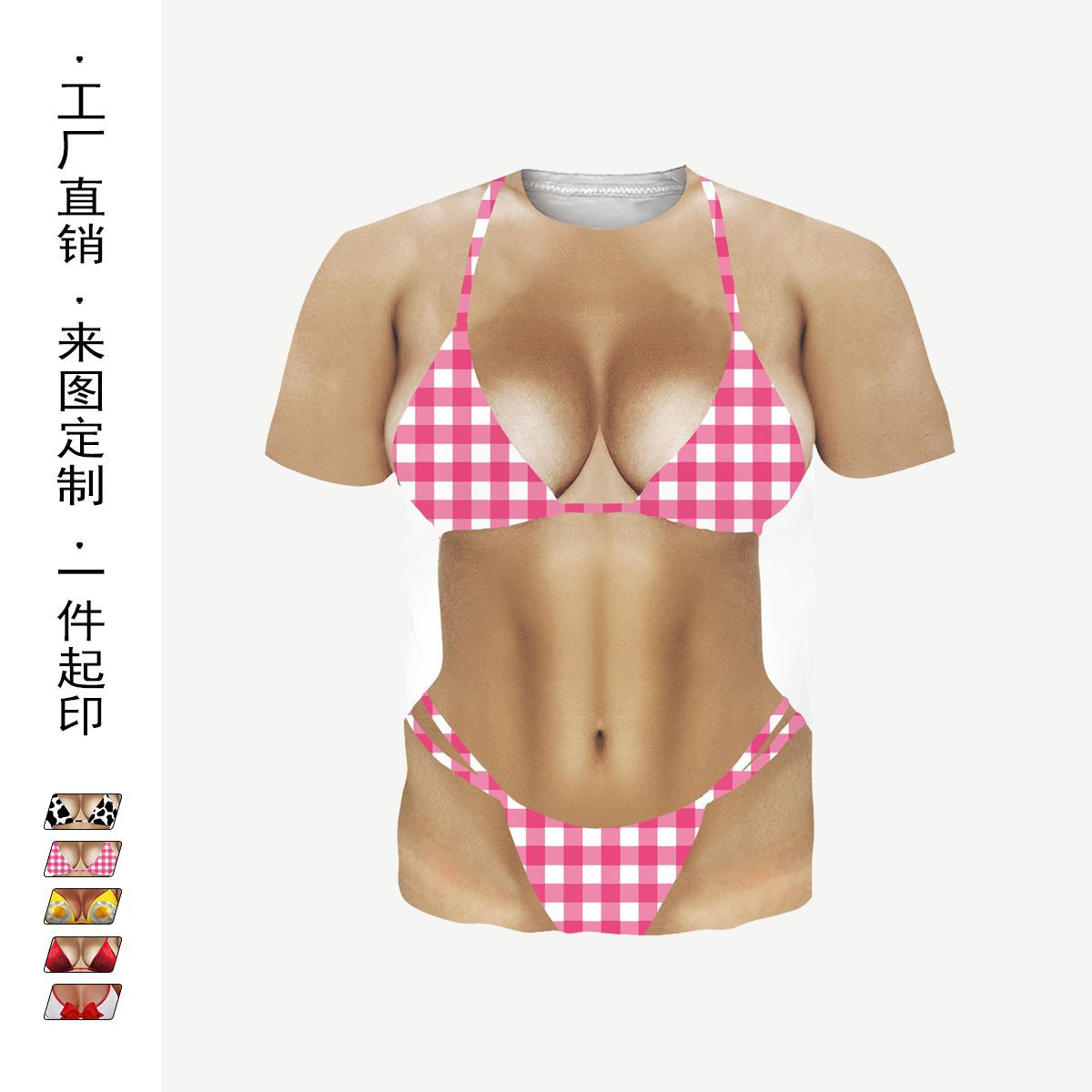 2025 ヨーロッパとアメリカの 3 点ストラップビキニ女性のパターンパーソナライズされたプリント T シャツ男性と女性の同じスタイルのストリートトレンド