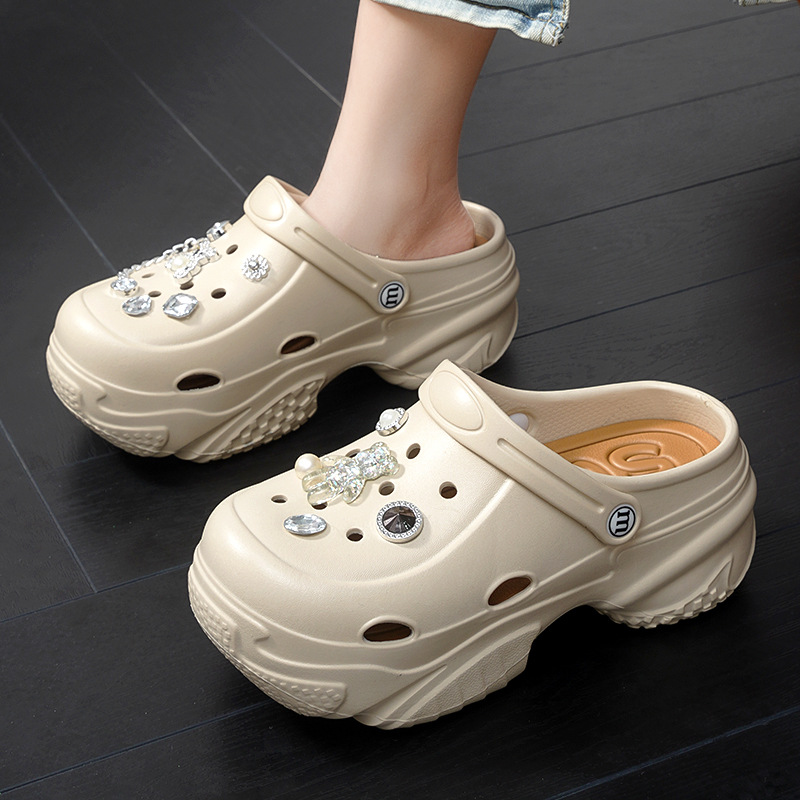 卸売り2025の新型の穴の靴の女性のタイプは夏の厚い底の涼しい滑り止めのビーチの靴の包頭の女性の半スリッパを着ます。