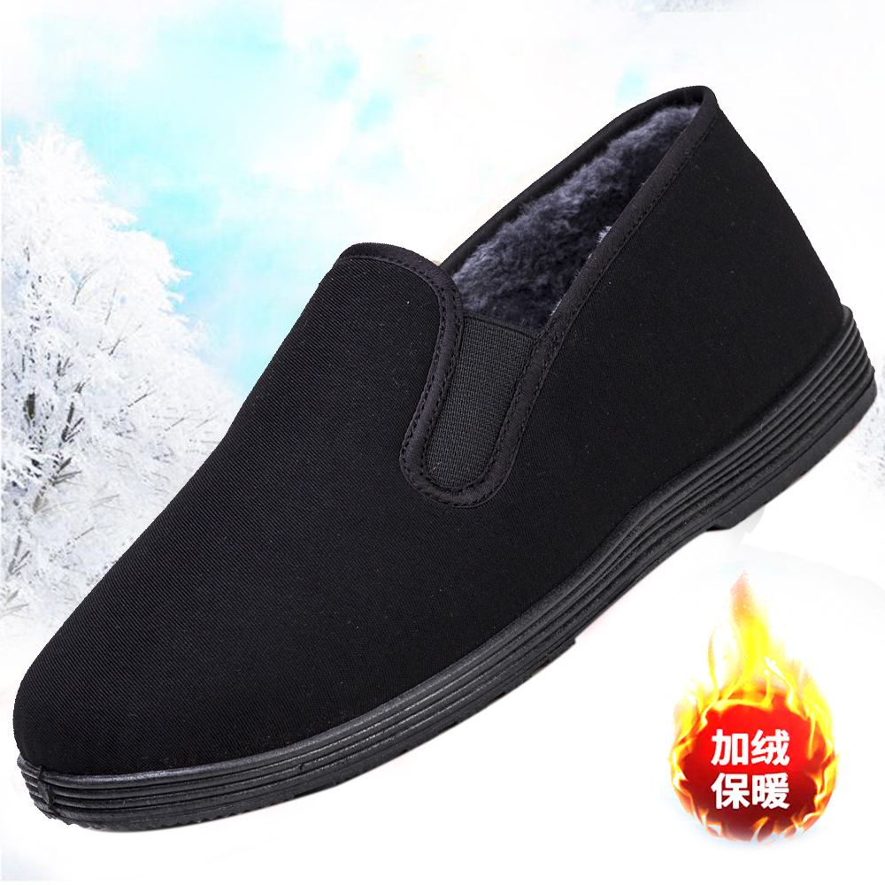 冬の古い北京の布靴とベルベットの厚い二綿靴男登山底仕事男靴保温中高年一足