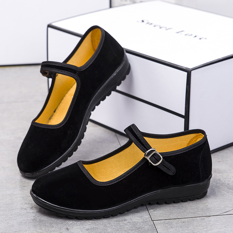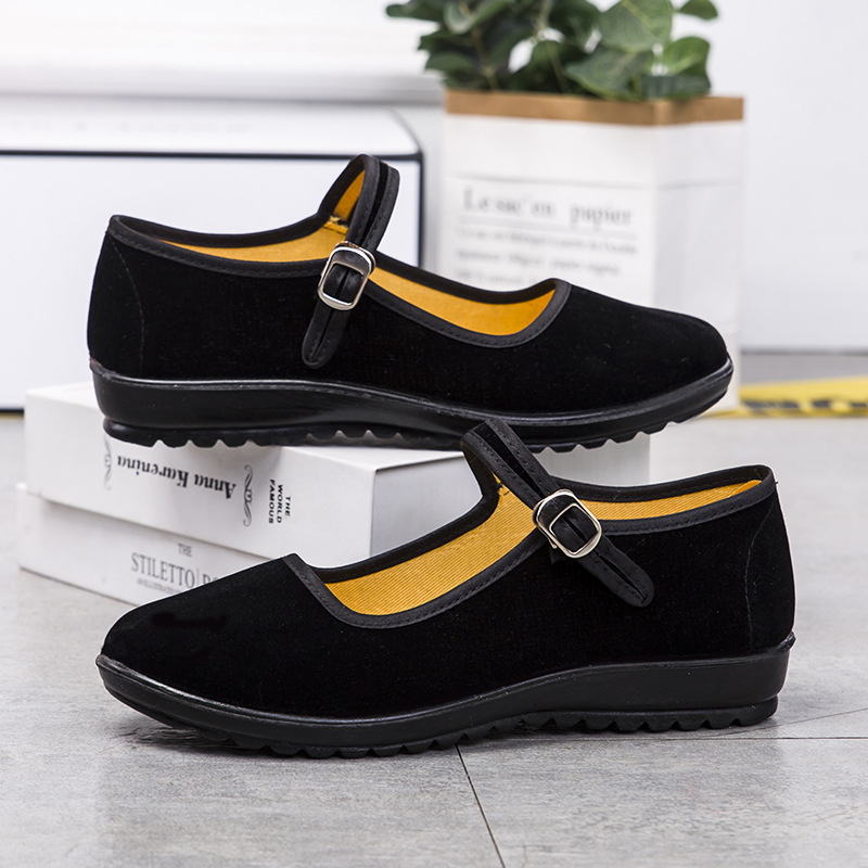 卸売りの古い北京の布の靴の女性のホテルの礼儀のダンスの平底の中高年の仕事の靴の黒い世代のお母さんの黒い布の靴