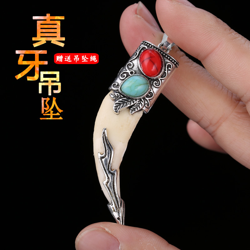 狼の歯ペンダント、本物の歯のレトロなネックレス、黒い犬の歯のポータブルアクセサリーペンダント、美しい女性の鎖骨の個性の歯