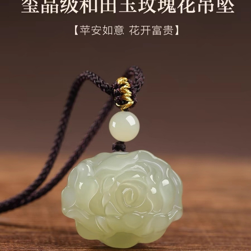 新疆ホータン翡翠白翡翠花開き富ペンダント女性の翡翠ローズネックレスペンダント翡翠ペンダントジュエリー