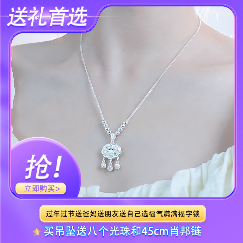 【1万人のコレクション】999純銀祝福セーフティロックペンダントレディースライトラグジュアリーニッチ2025新作シルバーロック