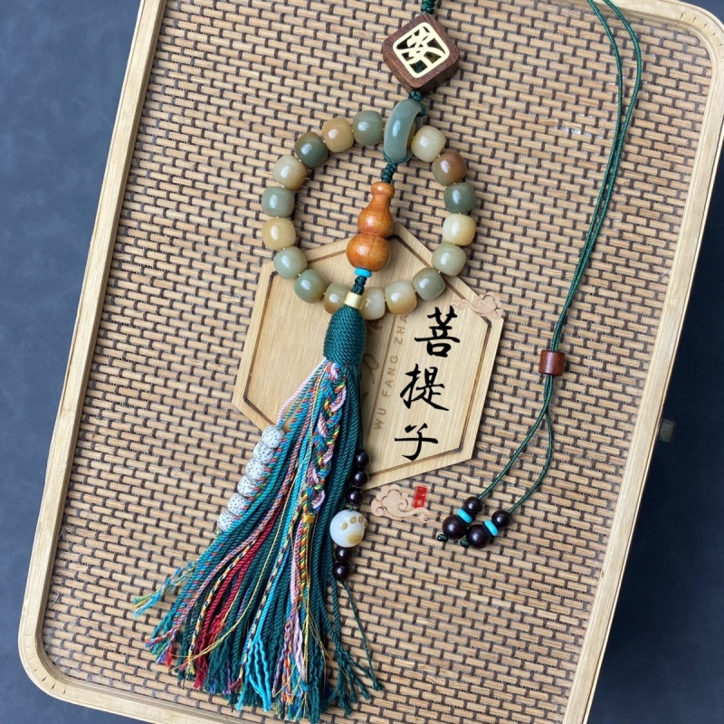 】新しい中国風の天然菩提車ペンダント、多用途カー用品、女性用車バックミラーペンダント、手作り