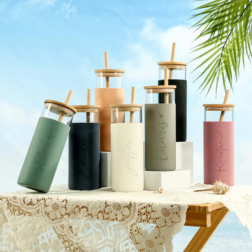 国境を越えた熱売ETSYアマゾンのカスタムシリカゲルカバーストローカップ耐高温竹蓋ガラスカップ