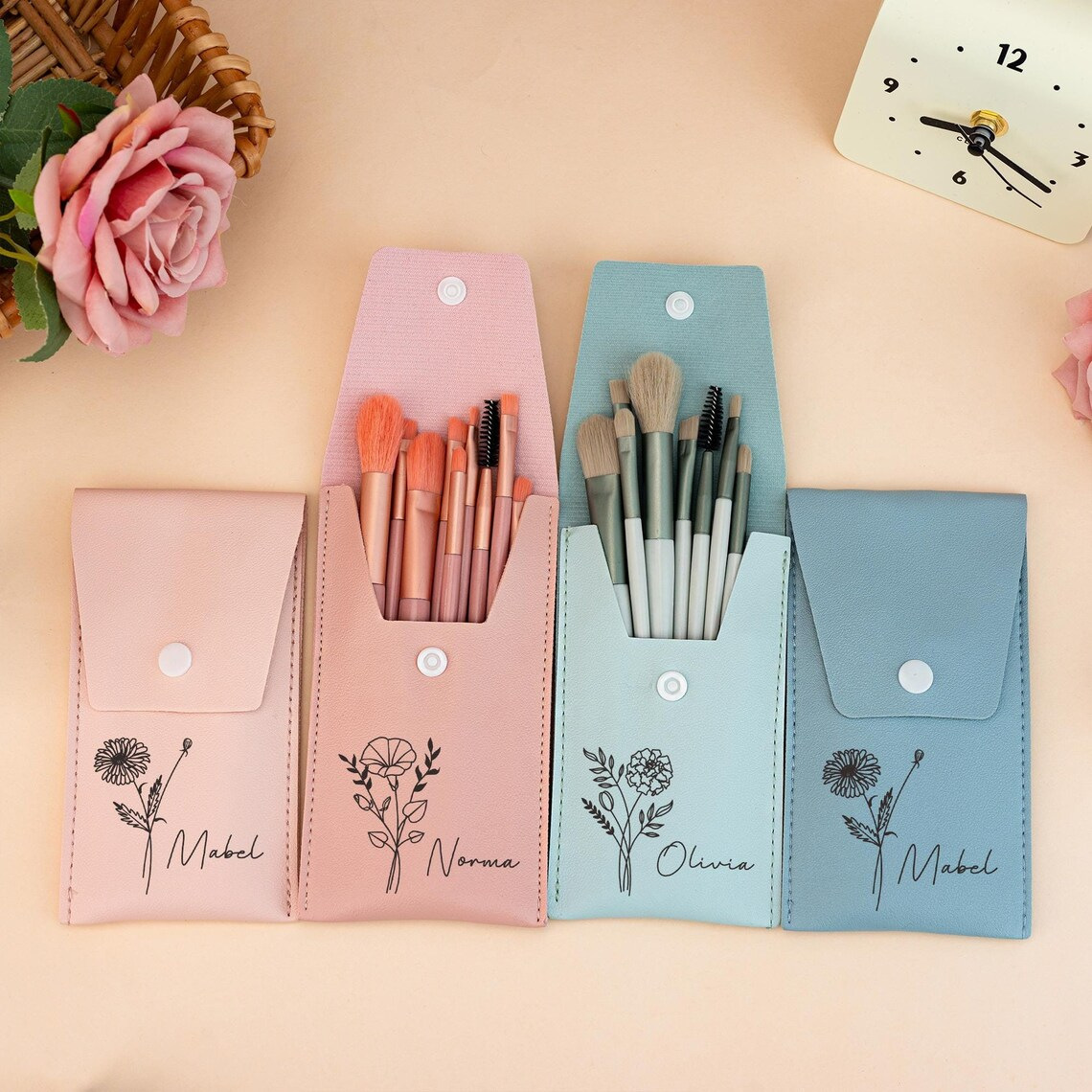 国境を越えたホットセールETSY Amazonカスタマイズされたボタンメイクブラシバッグ8点セット美容ツールバッグ