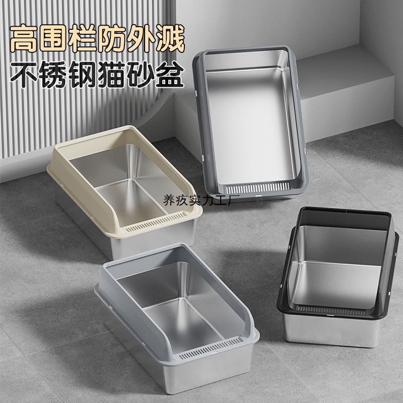 ステンレス製猫トイレ、飛沫防止カバー、上から入る猫トイレ、半密閉型防砂猫トイレ、家庭用ペット
