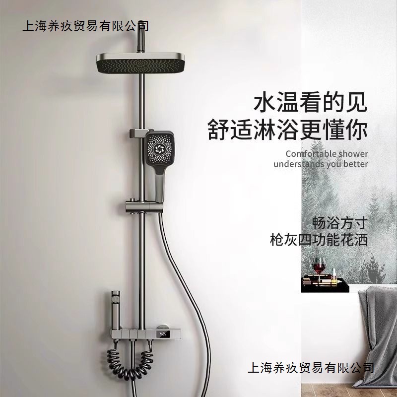 家庭用恒温シャワーセット、高級銅デジタルディスプレイ、雰囲気ライト、レインフォール、4速ピアノキー、隠しシャワー