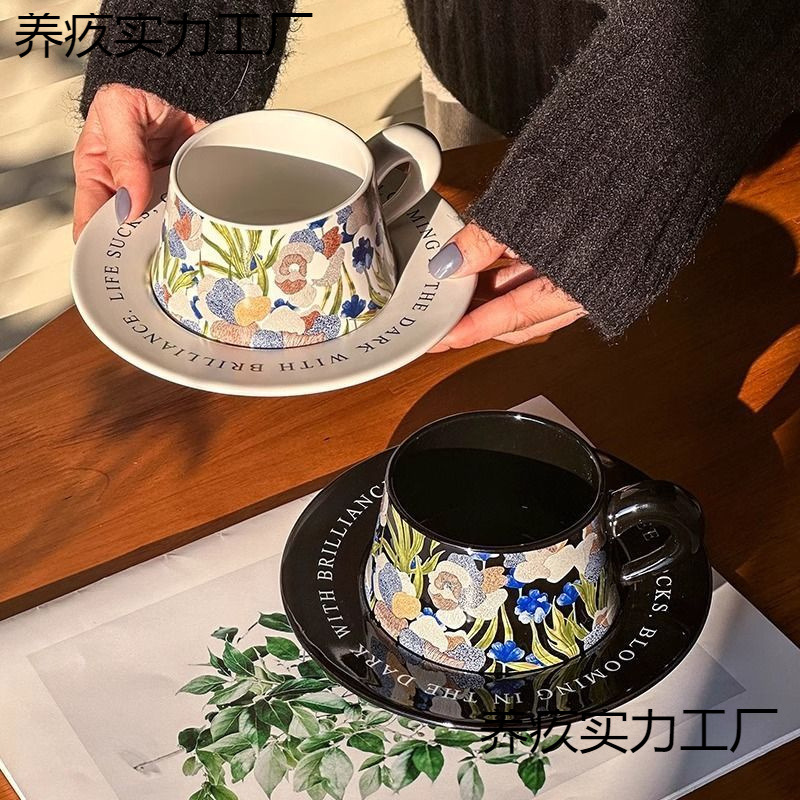 Ins風アイリスコーヒーカップセット高級精致マグカップ新婚創意レトロ陶磁器お土産