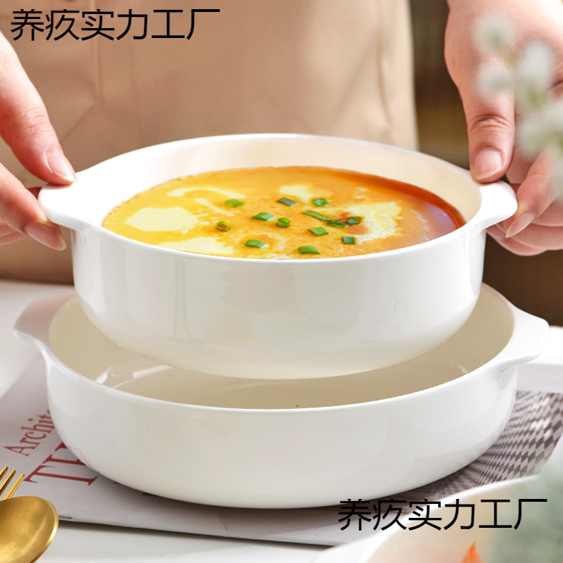 両耳のスープの碗の蒸し卵のスープの専用の碗の電子レンジは碗を焼いて皿を焼きます骨の磁器の皿の野菜の皿の家庭用を深めます