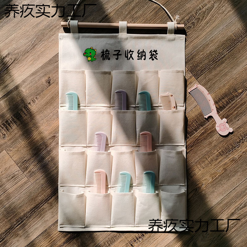 幼稚園の櫛の収納袋に壁の子供の汗を吸うタオルの収納袋を掛けます。