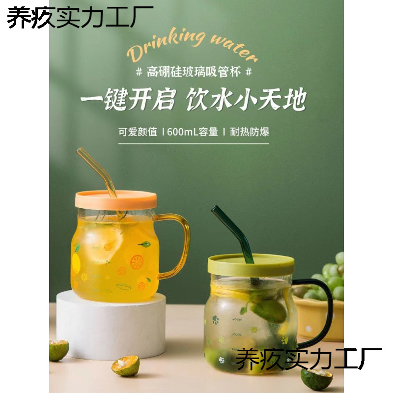 グラス高温カップ新型2025蓋付きストロー付き女子家庭用高颜値オフィスミルクティーカップ