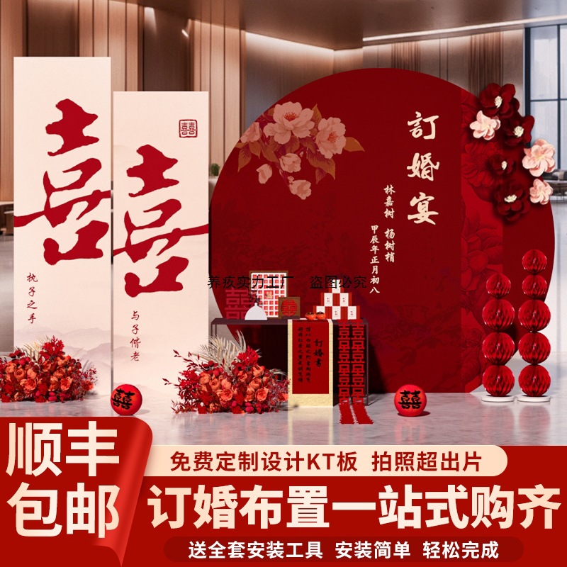 2024 新中国風の婚約宴会レイアウト装飾シーンシンプルな背景壁 kt ボード装飾品コンプリートパッケージ直販