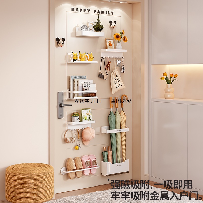 玄関ドア収納、磁気傘ラック、スリッパラック、ドアの後ろに穴を開けずに鍵やバッグなどを掛けるための収納ラック、雑貨フック