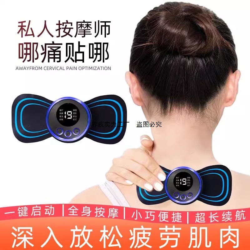 頸椎パルスマッサージパッチ ems ポータブル電気療法ミニマッサージャー肩と首スマート電気ネックマッサージャー