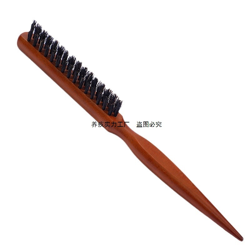猪毛細歯コーム、美容用三列毛コーム、ふわふわスタイリング、ロングハンドルメイクアップ、ポインテッドテールヘアカーリング木製コーム