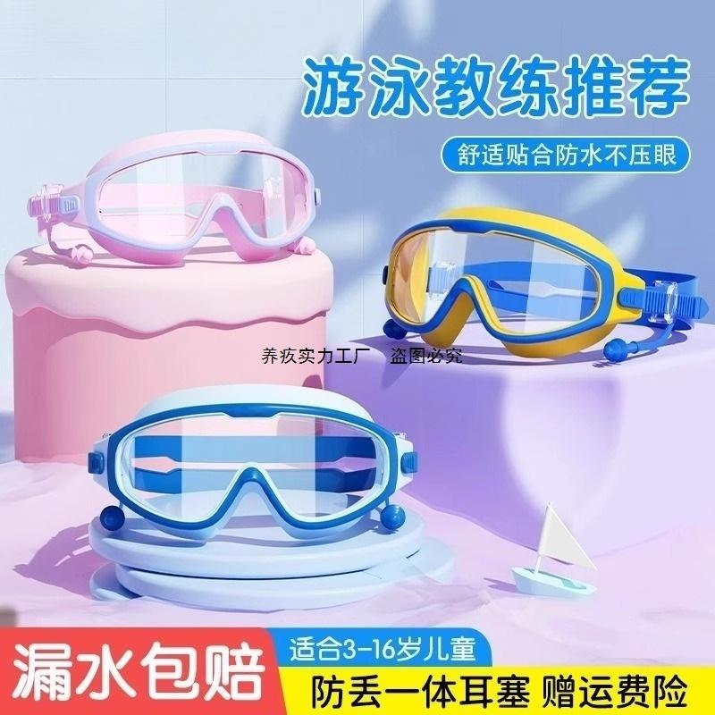 2025 子供用水泳ゴーグル HD 防曇防水大型フレーム透明男の子と女の子水泳メガネダイビング水泳キャップセット