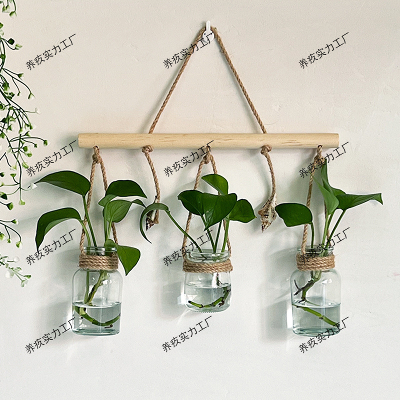 北欧インスタイル麻縄巻き貝ガラスボトル水耕花瓶装飾ペンダント小さな新鮮な壁の装飾壁植木鉢