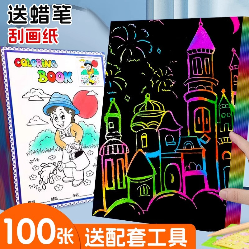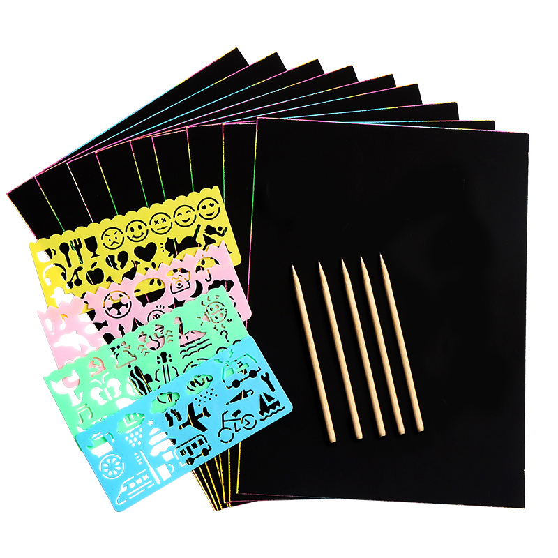 スクラッチオフ紙 A4 カラー学生幼稚園手作り diy 砂絵子供の落書き 8 オープン画用紙カラフルなスクラッチオフ絵画