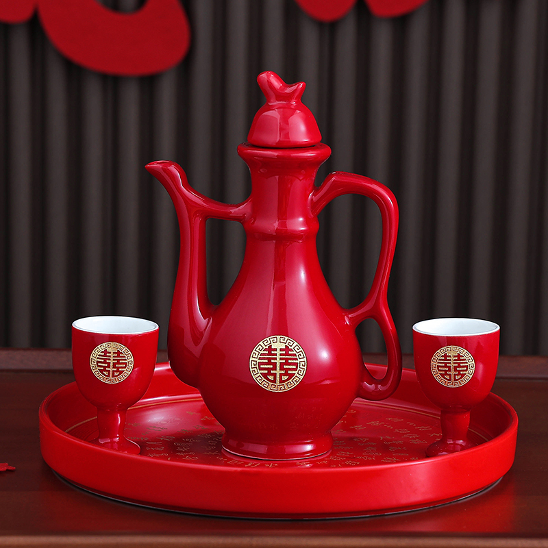 結婚式の乾杯グラスとフラスコセット中国風の結婚式の宴会お祝い交換カップワインレッド小さなワイングラスワインセットワインディスペンサー