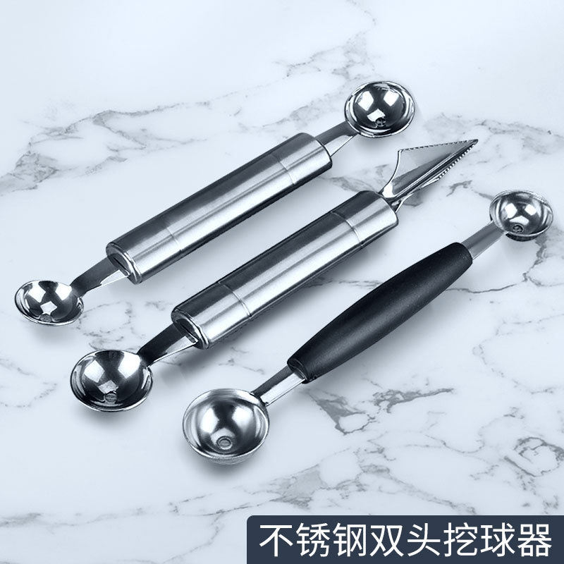 ステンレスの二頭の果物のボールを掘る器のスイカのスプーンの果物のボールを掘る器の果物の盛り合わせの彫刻の刀のアイスクリームのスプーンを掘る