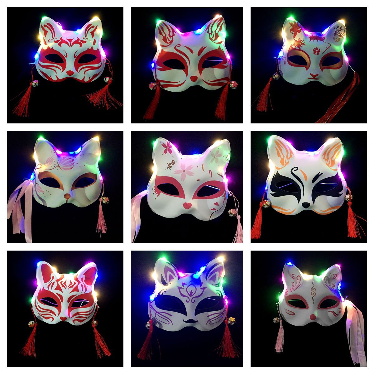 光る羽狐マスク半顔猫二次元アニメ古風狐マスク猫顔露店光るマスク