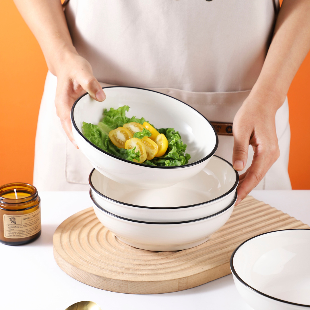 シンプルなプレート、家庭用スーププレート、陶器食器、フルーツサラダボウル、麦わら帽子プレート、深皿デザートプレート卸売
