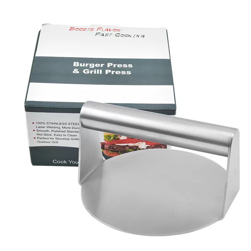 アマゾンの人気スポットステンレス304円形シリコンハンドル肉押し器多機能製ハンバーガープレス器