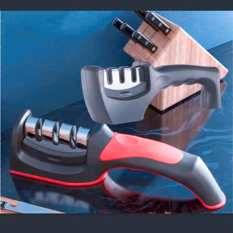キッチンネット赤手動高速多機能研削刀神器家庭用軽量三段タングステン鋼高速露店研削刀器