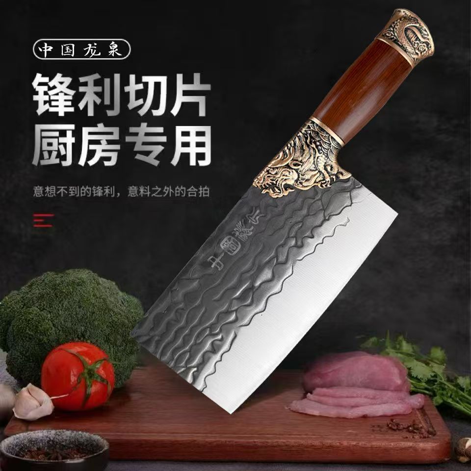 新型双龍頭竜泉斬り刀家庭用鋭利包丁鍛打ステンレス刀ハンマー紋蛇口斬り刀
