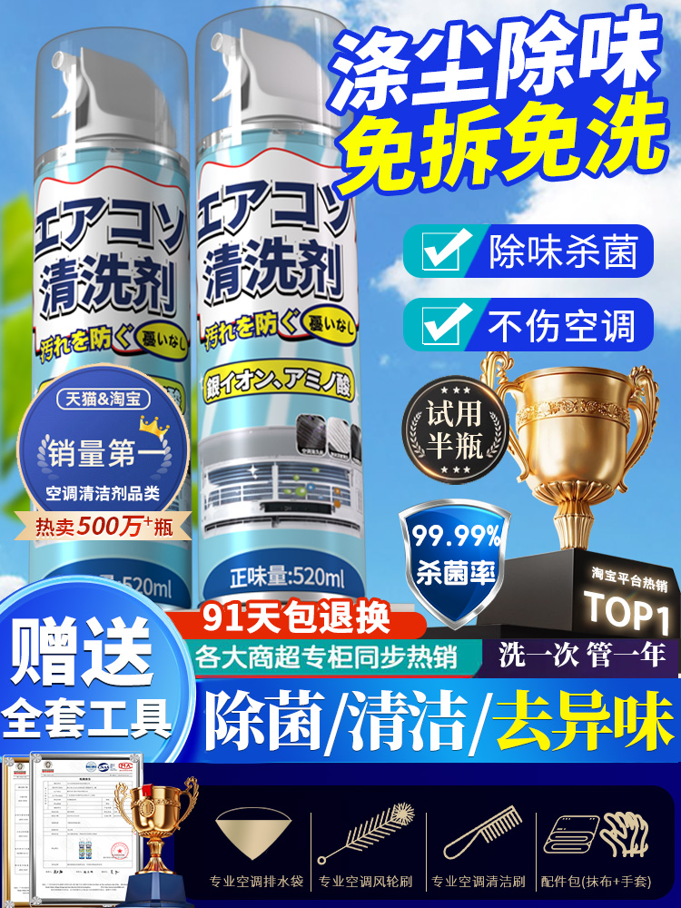 エアコン洗浄剤、家庭用室内機専用泡強力除染洗浄液一式、分解洗浄不要、神園