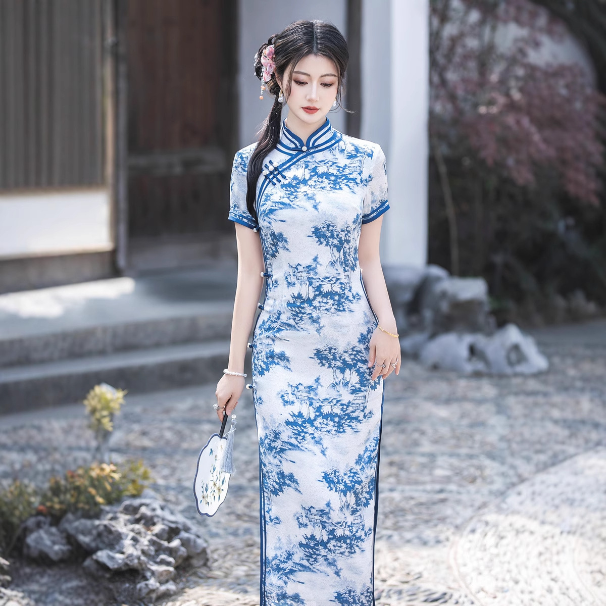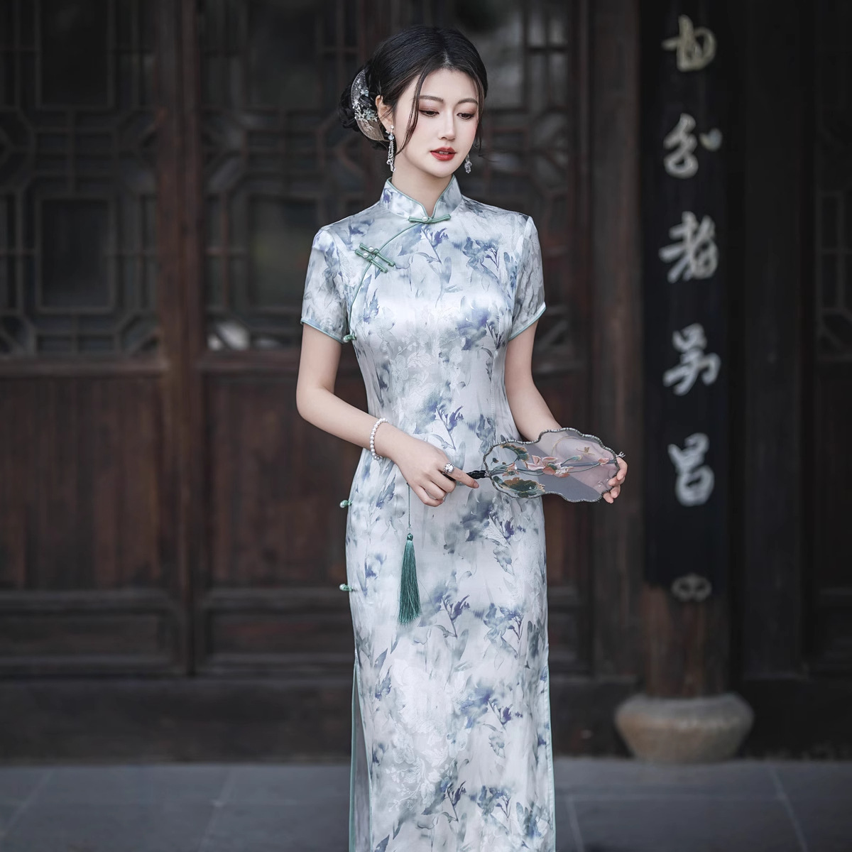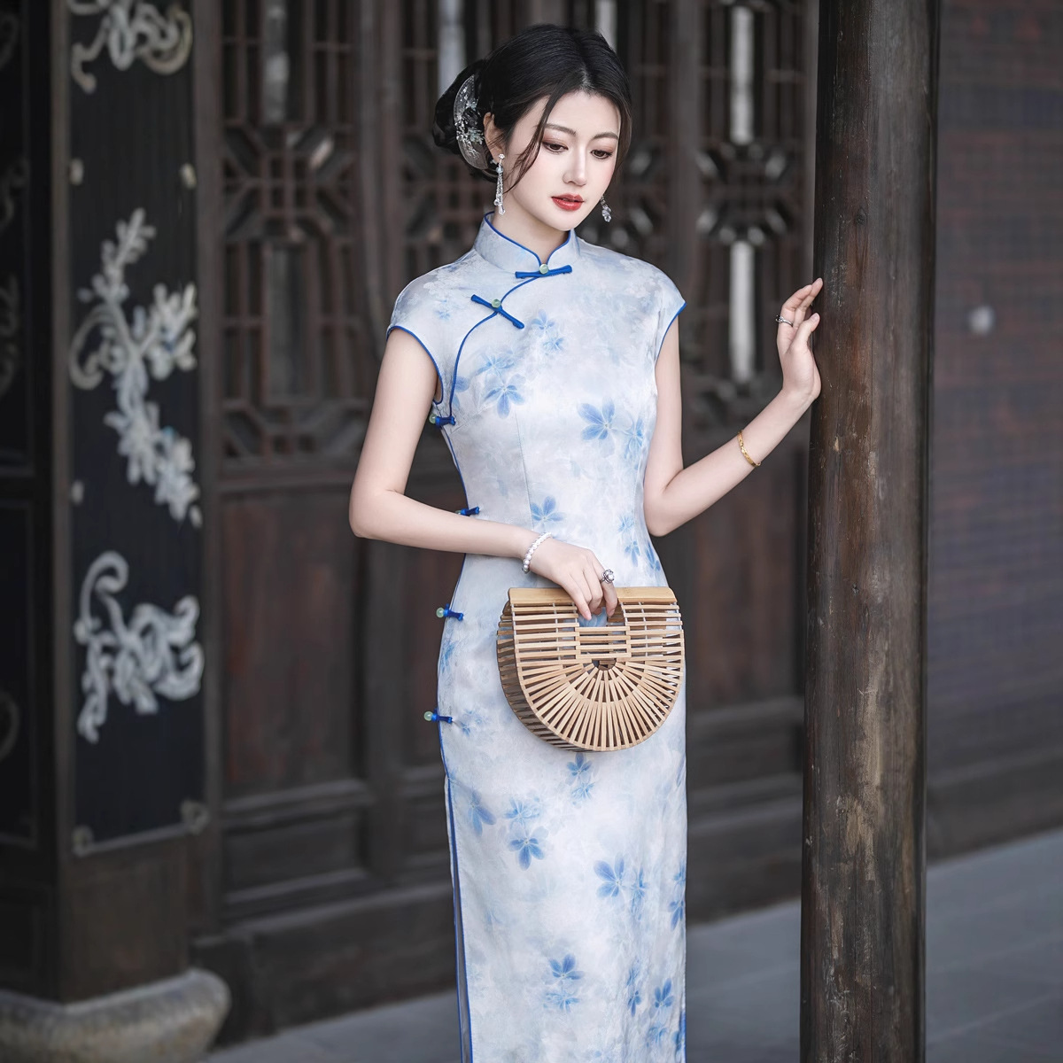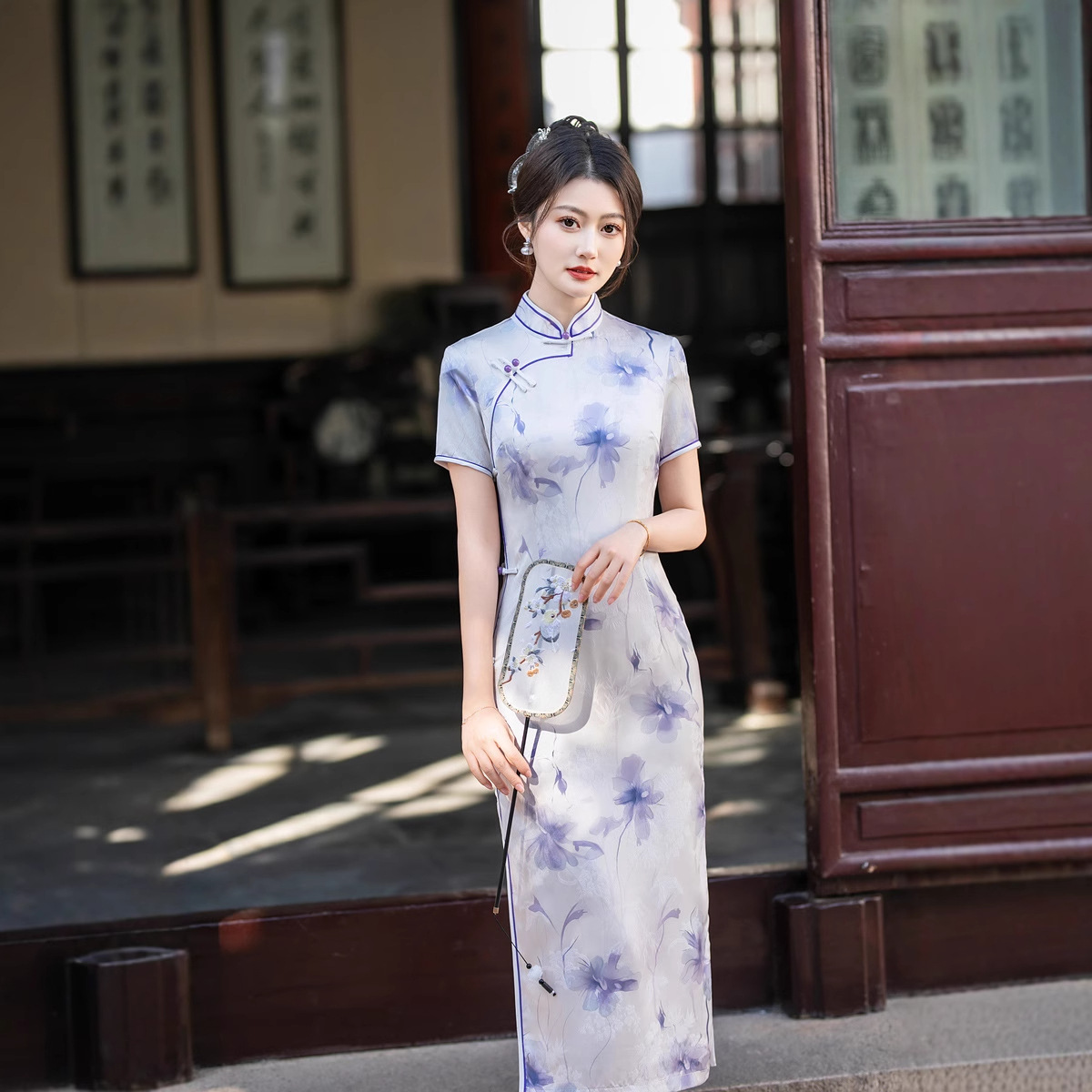蘇州のチャイナドレスは若いタイプの2025春夏の中の長いタイプのチャイナドレスを改良しました。