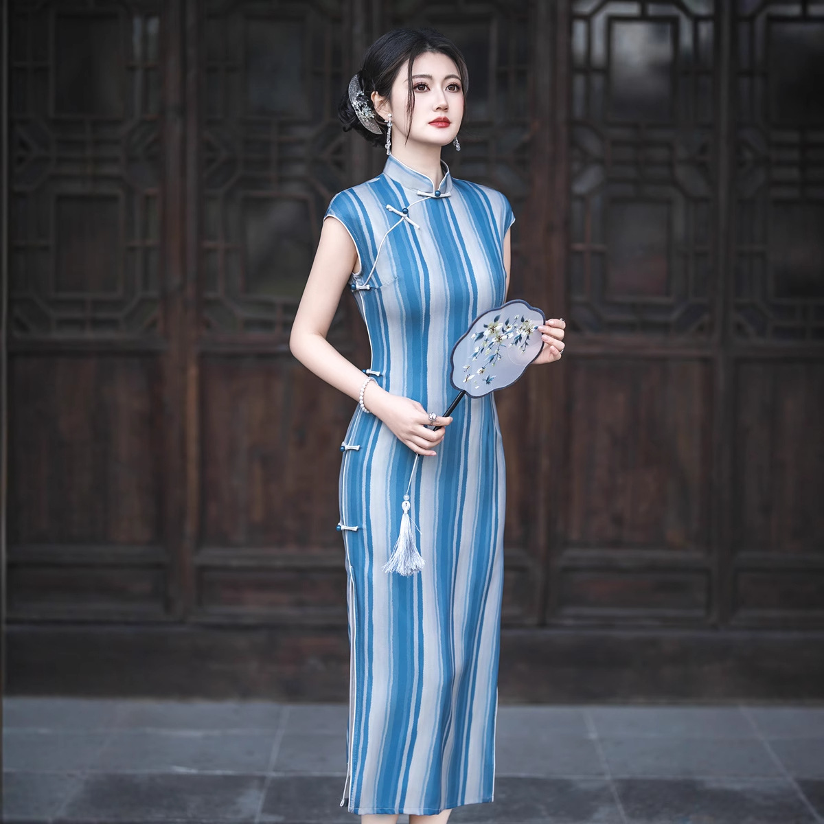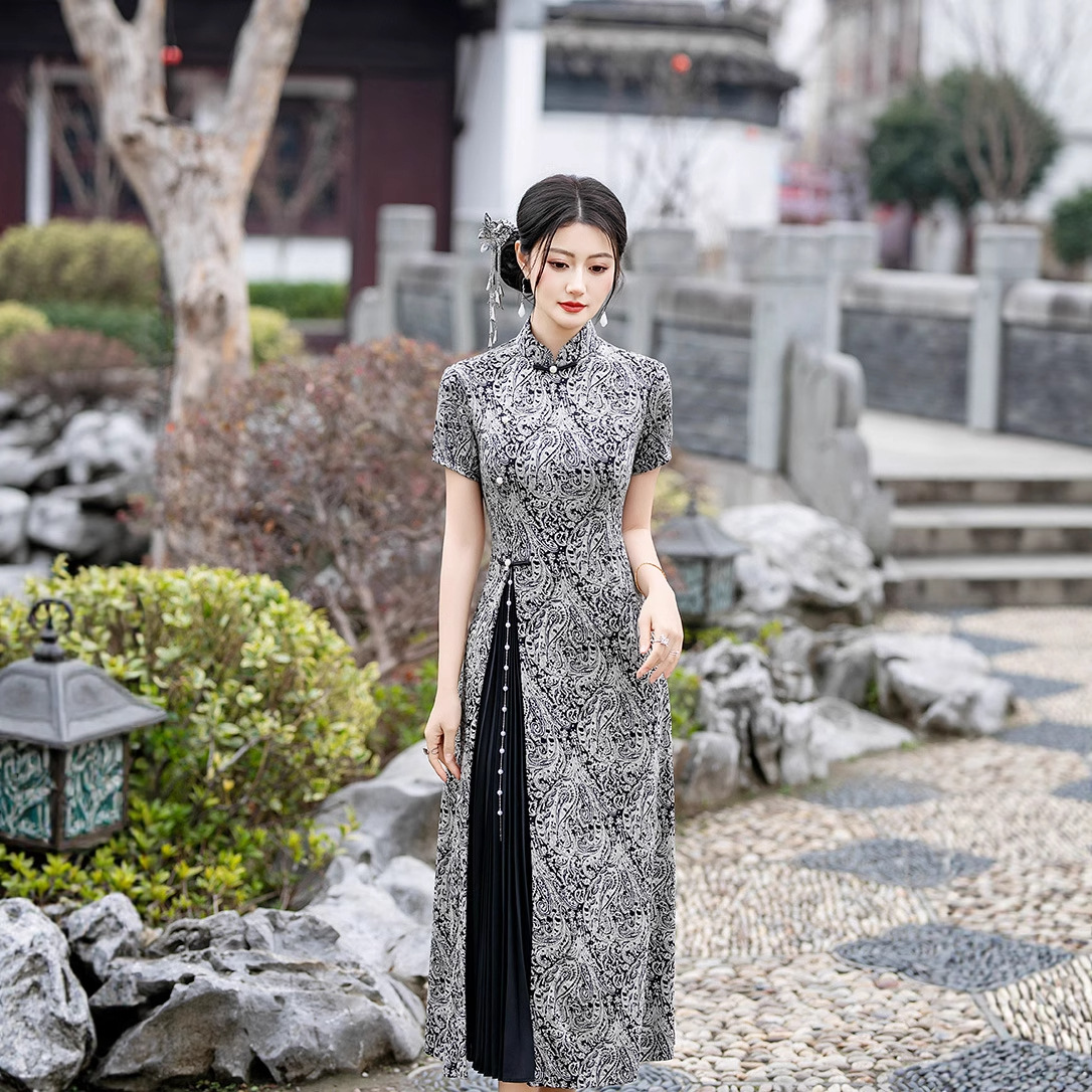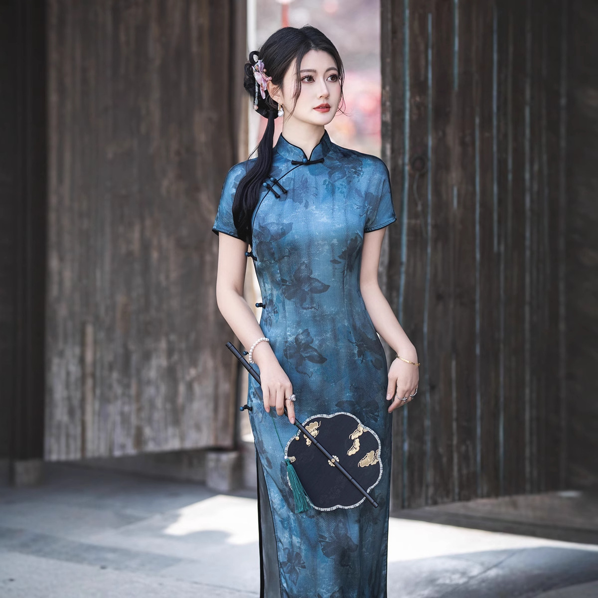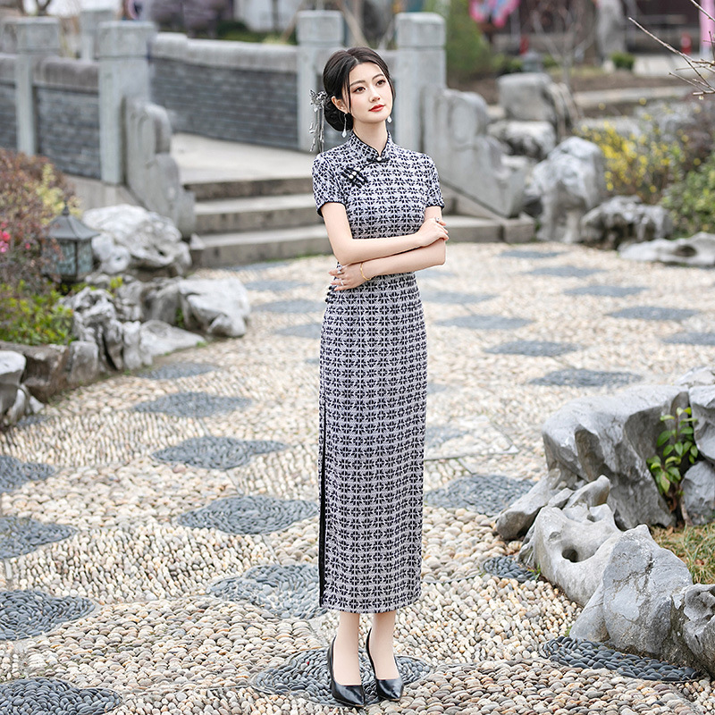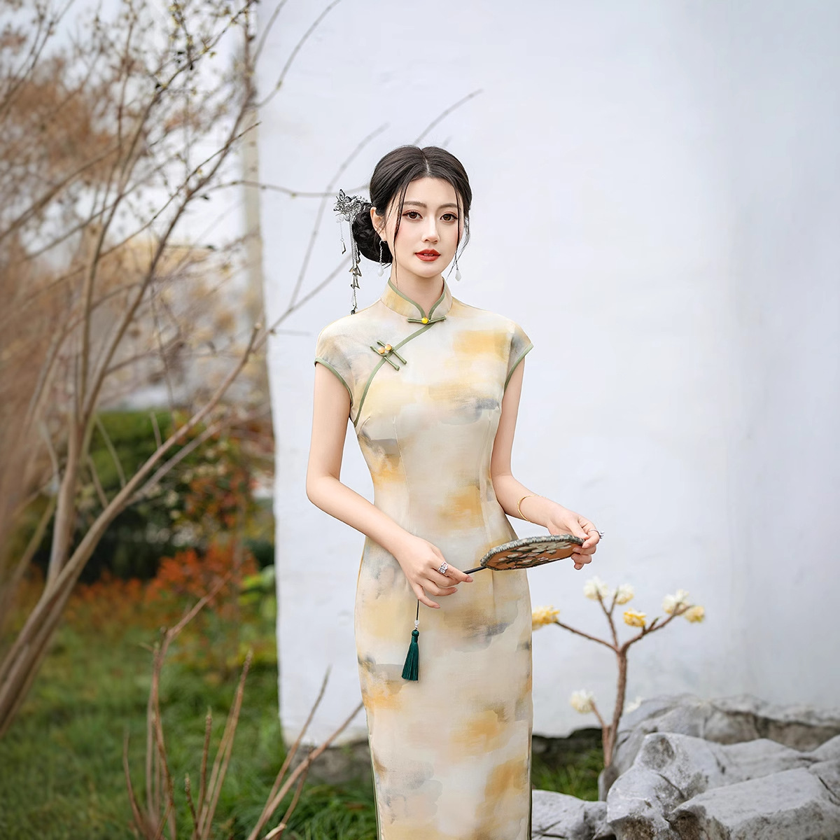 蘇州のチャイナドレスは若いタイプの2025春夏の中の長いタイプのチャイナドレスを改良しました。