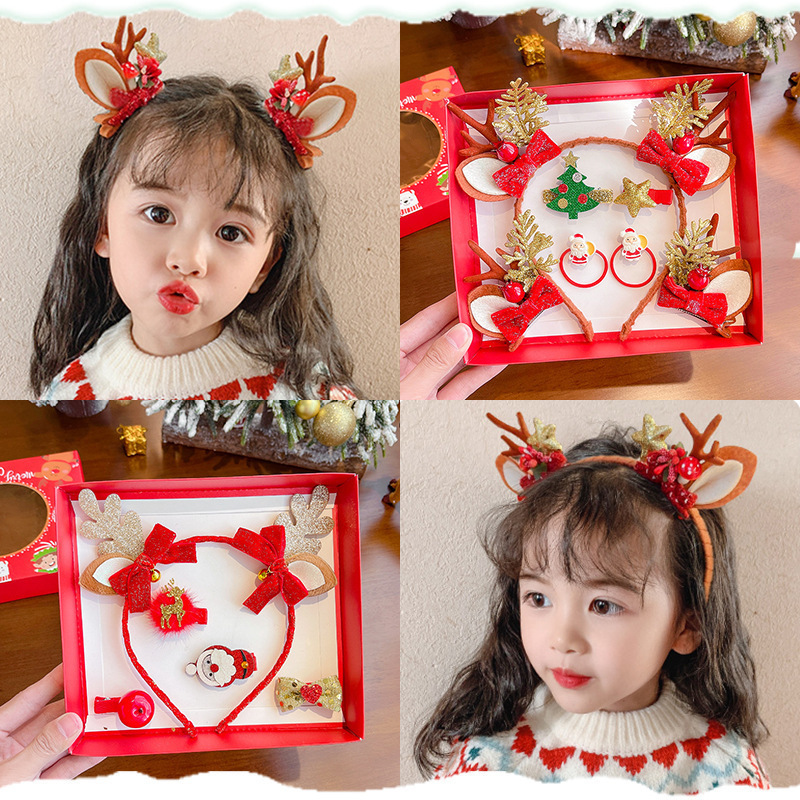 クリスマスの髪飾り7点セット子供のかわいいヘアピン赤ちゃんの祝日のプレゼントクリスマスの角のカチューシャのギフトボックス卸売り