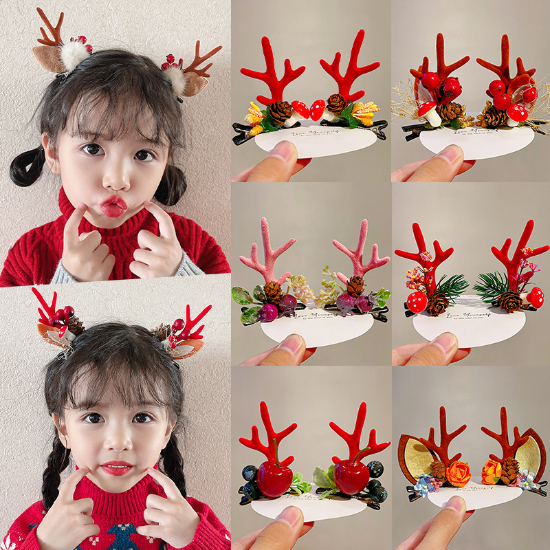 2023新型子供日韓少女赤ちゃんクリスマス髪飾りヘラジカかわいい鹿角頭飾りクリップ